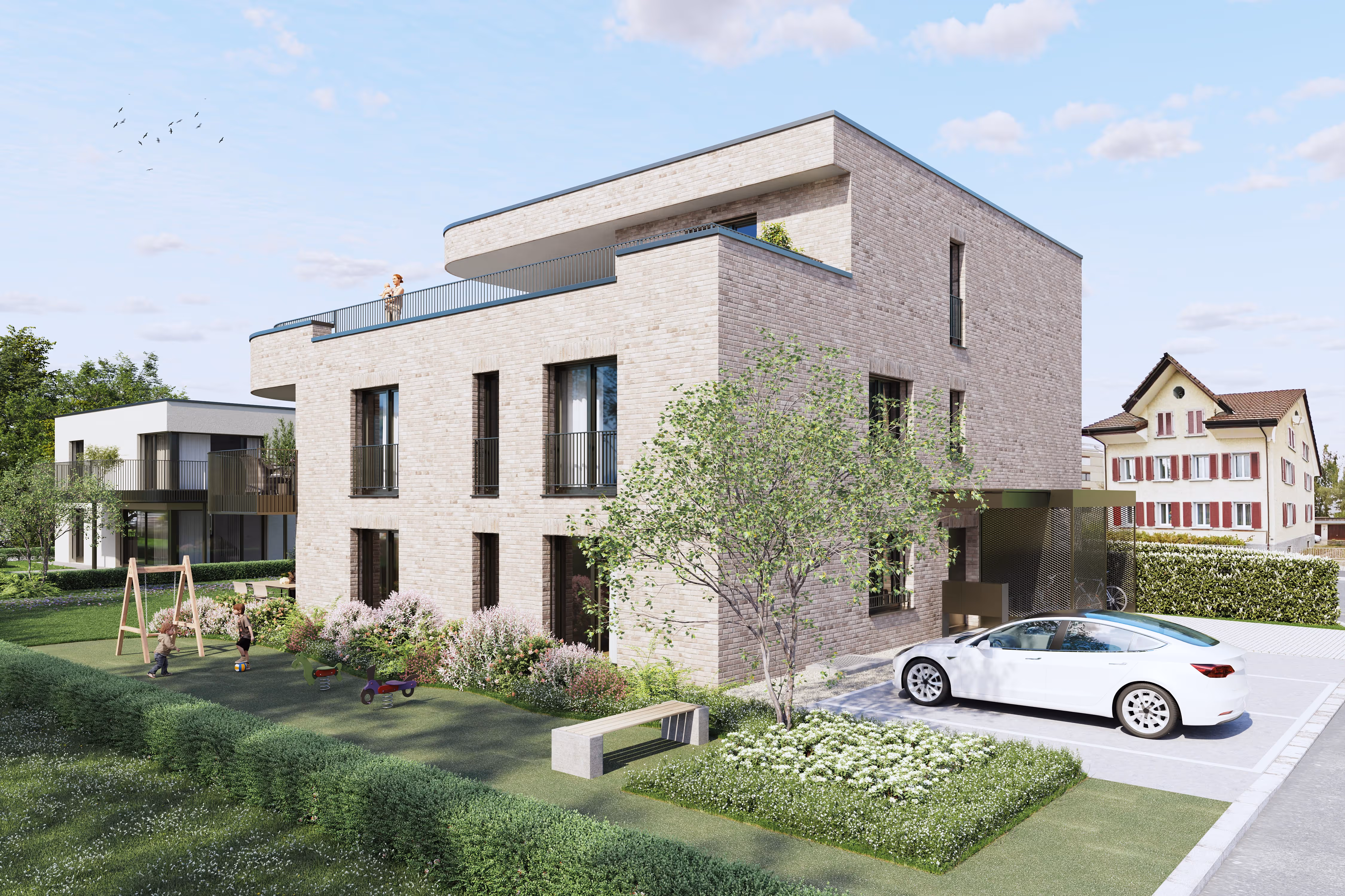 Die Verkaufsdokumentation basiert auf dem derzeitigen Planungsstand, den entsprechenden Kalkulationen und den aktuellen grundbuchrechtlichen Begründungsvorstellungen. Änderungen sowie der Zwischenverkauf bleiben vorbehalten. Die fotorealistischen Darstellungen haben den Zweck, einen Eindruck des geplanten Baus zu vermitteln. Sie haben bezüglich Materialisierung, Farben, Ausstattung, Baukörper- und Umgebungsgestaltung und Bepflanzung nur richtungsweisenden Charakter. Allfällige Änderungen behält sich die Verkäuferschaft ausdrücklich vor. Die Dokumentation ist nicht integrierender Bestandteil von späteren vertraglichen Vereinbarungen mit der Käuferschaft. Aus den Angaben in dieser Verkaufsdokumentation können keinerlei Ansprüche geltend gemacht werden.
